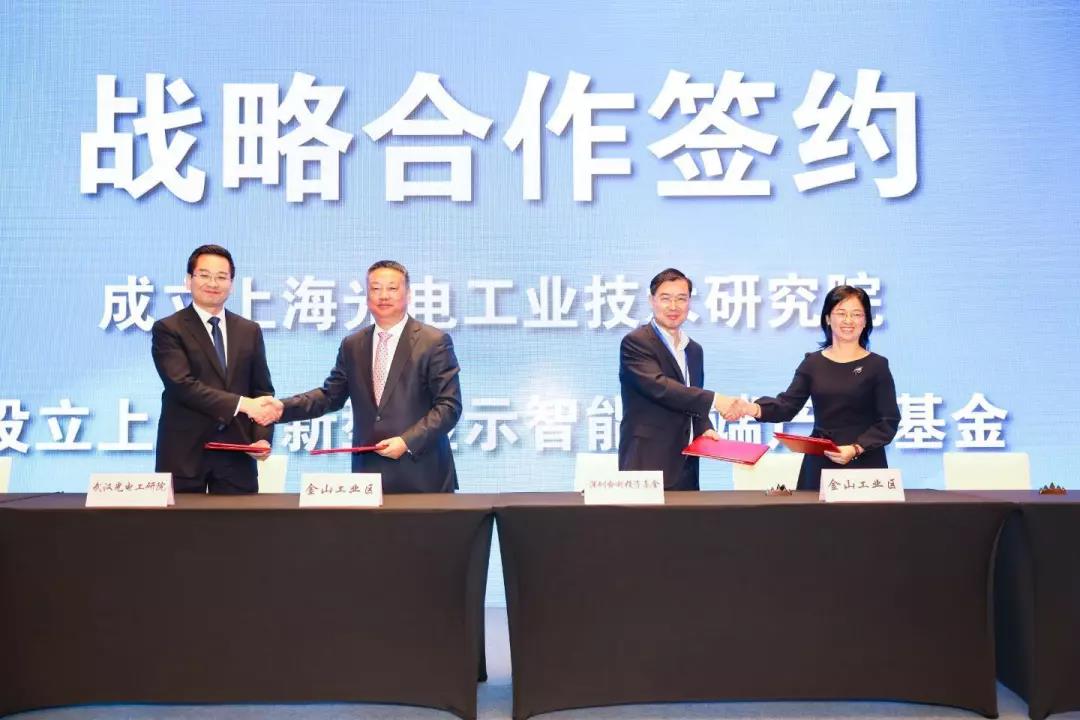 上海光电工业技术研究院、上海市新型显示智能终端产业基金在论坛上签约落地,莱特光电、奥来德光电、九山电子和盛本智能四个新型显示上下游配套项目正式签约落户金山。